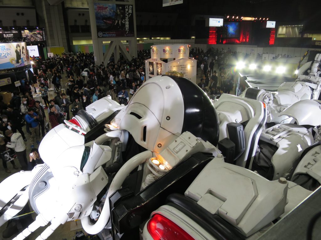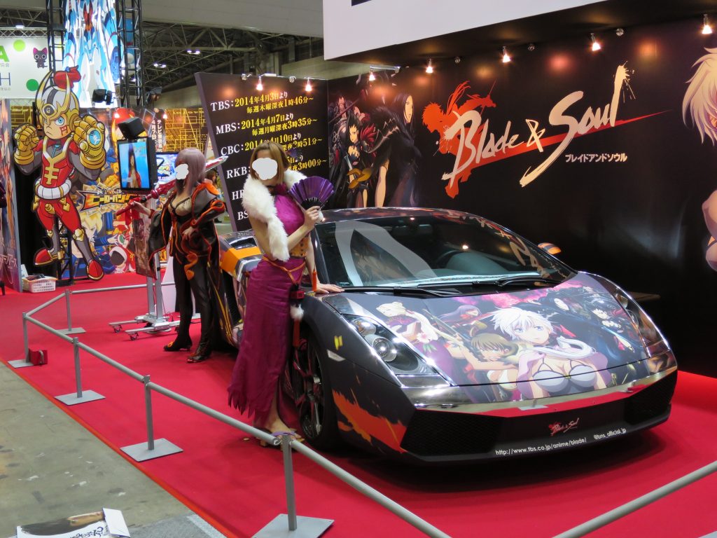 中に入ると大勢の人。コンパニオンやレイヤーのお兄さんやお姉さん。色んなアニメ情報がギラギラと映されるディスプレイの数々。大きな模型や痛車も。気づいたら必死にカメラ小僧していました。